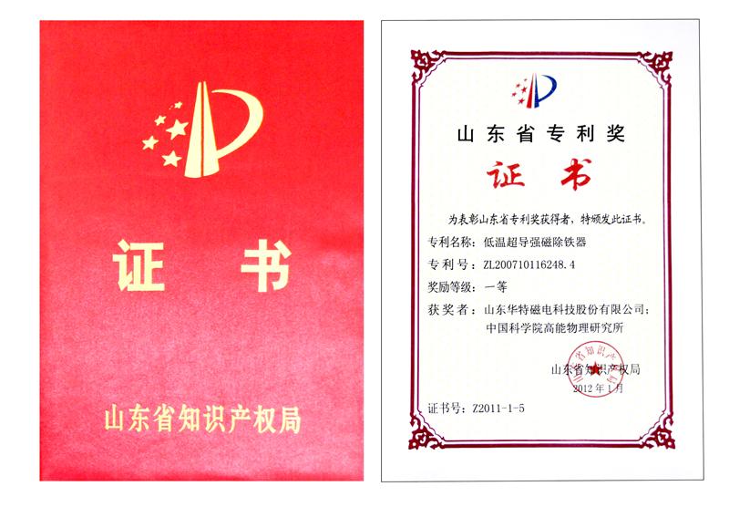 “低溫超導(dǎo)強(qiáng)磁除鐵器”榮獲山東省發(fā)明專利一等獎(jiǎng)