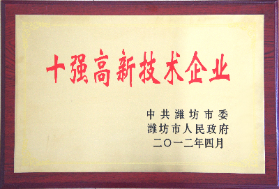 公司榮獲2011年度濰坊市十強高新技術企業
