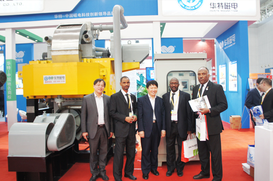 進入N1展館,一眼便能望到藍白相間的華特磁電展區,此次,華特攜1.5m立環高梯度磁選機(磁場達18000Gs)和1.8m大筒徑高效濕式預選機參展,憑借油冷卻技術及產品低能耗、低溫升、高場強、高壽命等顯著優勢,先后吸引了300多家客戶,其中近期有合作項目的五十余個。