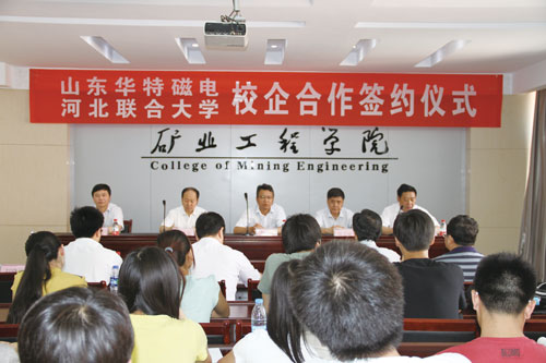 24日上午,在礦業工程學院舉行了校企戰略合作框架協議簽約儀式。河北聯合大學黨委常委李昌存、河北聯合大學礦業工程學院黨委書記陳志敏、院長甘德清、副院長張云鵬、副院長李富平以及礦業工程學院教授、博士生導師張錦瑞、趙禮兵等出席簽約儀式,甘德清院長主持,李昌存致歡迎辭,王董與李院長代表雙方簽署框架協議,達成戰略合作伙伴共識,開創華特校企戰略合作的先河。為了適應我國礦業資源開發需要,本著“優勢互補、互聯共贏、長期合作、共同發展”的基本原則,雙方決定在人才培養、科學研究與技術開發等方面開展全面合作,充分利用雙方在資源、人才、教育、技術和管理方面的優勢,培養和建設高水平人才隊伍,實現在新形勢下共同發展的目標,探索“產學研”合作新模式。