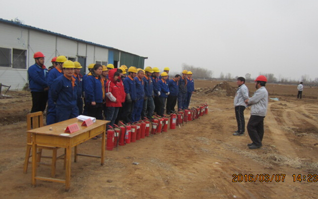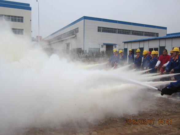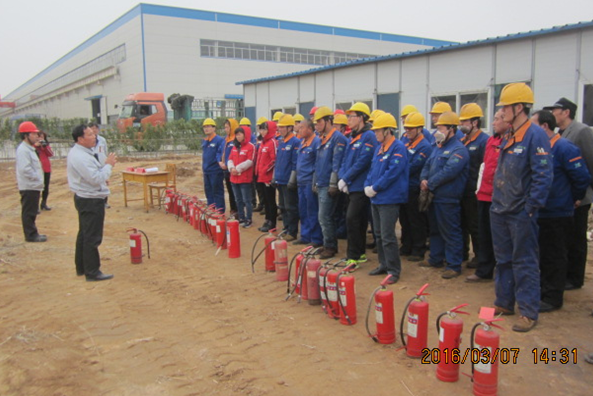 這次消防演練,由企管部王建功經理擔任總指揮。首先,王經理強調了消防安全工作的重要性及本次消防演練的目的意義。安全設備部劉漢慶經理講解了滅火器具體使用方法,并就消防如何逃生等安全知識進行了培訓。最后,公司副總裁兼質量總監王建波就公司重點危險源進行了強調,并對過去的消防安全經驗教訓做了總結和回顧。辦公室及生產中心領導同時參加活動。