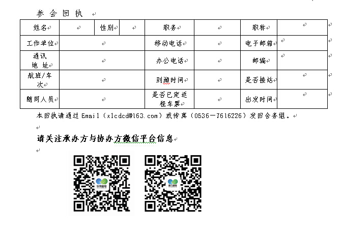 請有意向參加會議的各理事長、常務理事、理事、會員單位填寫參會回執或傳真至會務組。