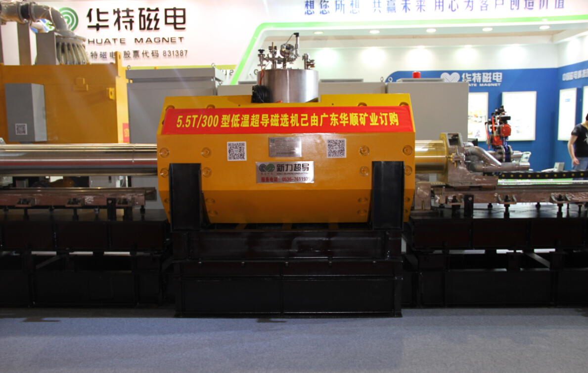 為參加本次展會,我公司精心準備了5.5T/300型低溫超導磁選機和1.5T/1000型電磁漿料磁選機兩臺工業用磁選機,不遠千里,歷時兩天從濰坊運至廣州展會現場,成為本次展會上磁選除鐵裝備的最大亮點。