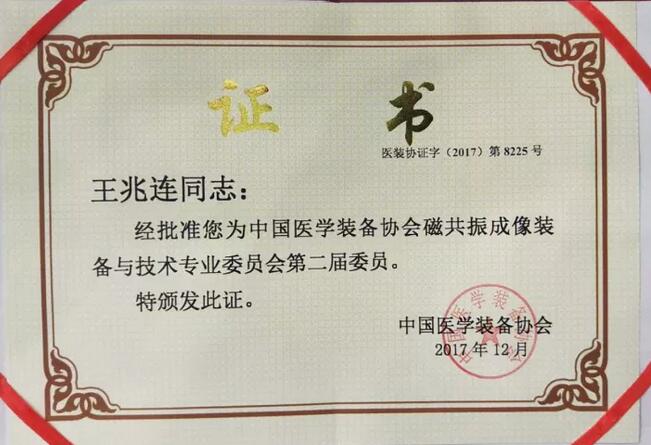 會議由北京大學(xué)醫(yī)學(xué)部科研處處長、學(xué)科建設(shè)辦公室主任韓鴻賓教授主持,中國醫(yī)療裝備協(xié)會趙自林理事長、任健監(jiān)事長、磁共振專委會顧問馮義濂教授、主任委員張云亭教授、常務(wù)委員王洪教授等相關(guān)領(lǐng)導(dǎo)出席會議。主任委員張云亭教授作第一屆磁共振委員會工作報告并介紹換屆籌備過程,醫(yī)學(xué)裝備協(xié)會任健監(jiān)事長對換屆選舉過程進行監(jiān)督并宣布選舉結(jié)果。大會一致通過專委會主任委員、常務(wù)委員人選,并由中國醫(yī)學(xué)裝備協(xié)會趙自林理事長頒發(fā)了證書。濰坊新力超導(dǎo)公司董事長王兆連當(dāng)選本屆中國醫(yī)學(xué)裝備協(xié)會磁共振成像裝備與技術(shù)專業(yè)委員會委員。