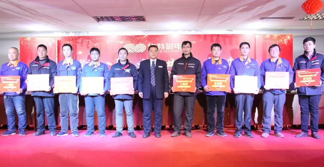 公司董事長兼總裁王兆連在為受表彰技工頒獎時表示,優秀技工是推動華特磁電發展的不竭動力,對他們進行表彰是為了進一步凸顯其地位及作用,彰顯“典型示范”的帶動作用,引導所有員工“學技術、敢創造、比貢獻”。公司將繼續實行對獲得縣級及以上獎勵的員工公司配套獎勵50%的政策,鼓勵員工勇攀技術高峰。