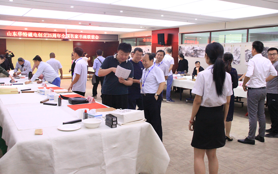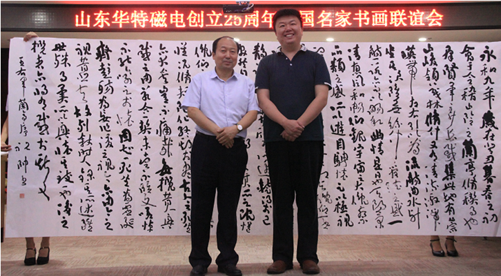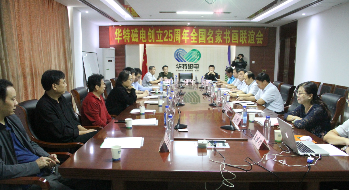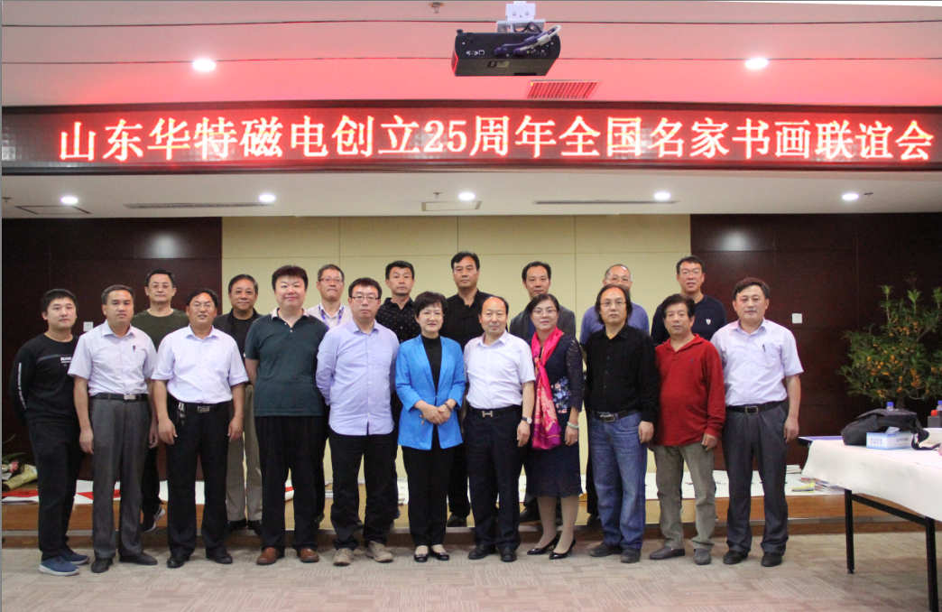 座談會上,王兆連董事長代表華特公司各位股東以及全體員工,向出席本次活動的各位領導以及書畫界的專家們表示熱烈歡迎。并表示,公司自1993年8月8日創立至今,歷經25年風霜雪雨,在各級黨委、政府的大力支持下,在社會各界的熱情幫助下,在全體員工的不懈努力下,取得了跨越式發展,由創業之初的一間辦公室、兩間茅草屋發展成為知名的磁電裝備制造業領軍企業。二十五年的艱辛歷程凝練出了華特特有的,具有旺盛生命力、務實、高效、團結的企業文化。此次聯誼會的成功舉辦,是各位書畫名家用精美作品向華特公司25周年華誕獻上的一份精神厚禮,這將作為慶祝“華特創立25周年”宣傳紀念活動的重要組成部分,在公司創新發展歷程上留下濃墨重彩的一筆。今天有幸借此機會,同所有的書畫愛好者們,一起分享各位德藝雙馨的書畫藝術家帶來的全新視覺體驗,領略藝術美的韻味,感受傳統文化的魅力!