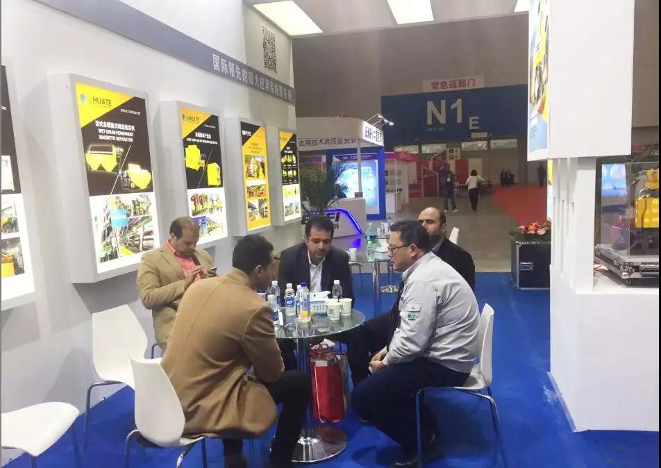 會(huì)展現(xiàn)場(chǎng),工作人員熱情地向客戶介紹華特公司最新取得的科研成果,對(duì)客戶關(guān)心的核心產(chǎn)品工藝、技術(shù)性能以及產(chǎn)品市場(chǎng)占有率等情況一一作詳細(xì)解答。國(guó)內(nèi)外客戶對(duì)華特公司研制的具有自主知識(shí)產(chǎn)權(quán)的油水復(fù)合冷卻立環(huán)高梯度磁選機(jī)、提精降渣磁選機(jī)、風(fēng)選機(jī)、干選機(jī)等產(chǎn)品表現(xiàn)出極大的興趣,詳細(xì)詢問了相關(guān)產(chǎn)品的適用范圍、結(jié)構(gòu)性能等方面,并表示希望以此次展會(huì)為契機(jī),雙方開展廣泛而深入的合作。